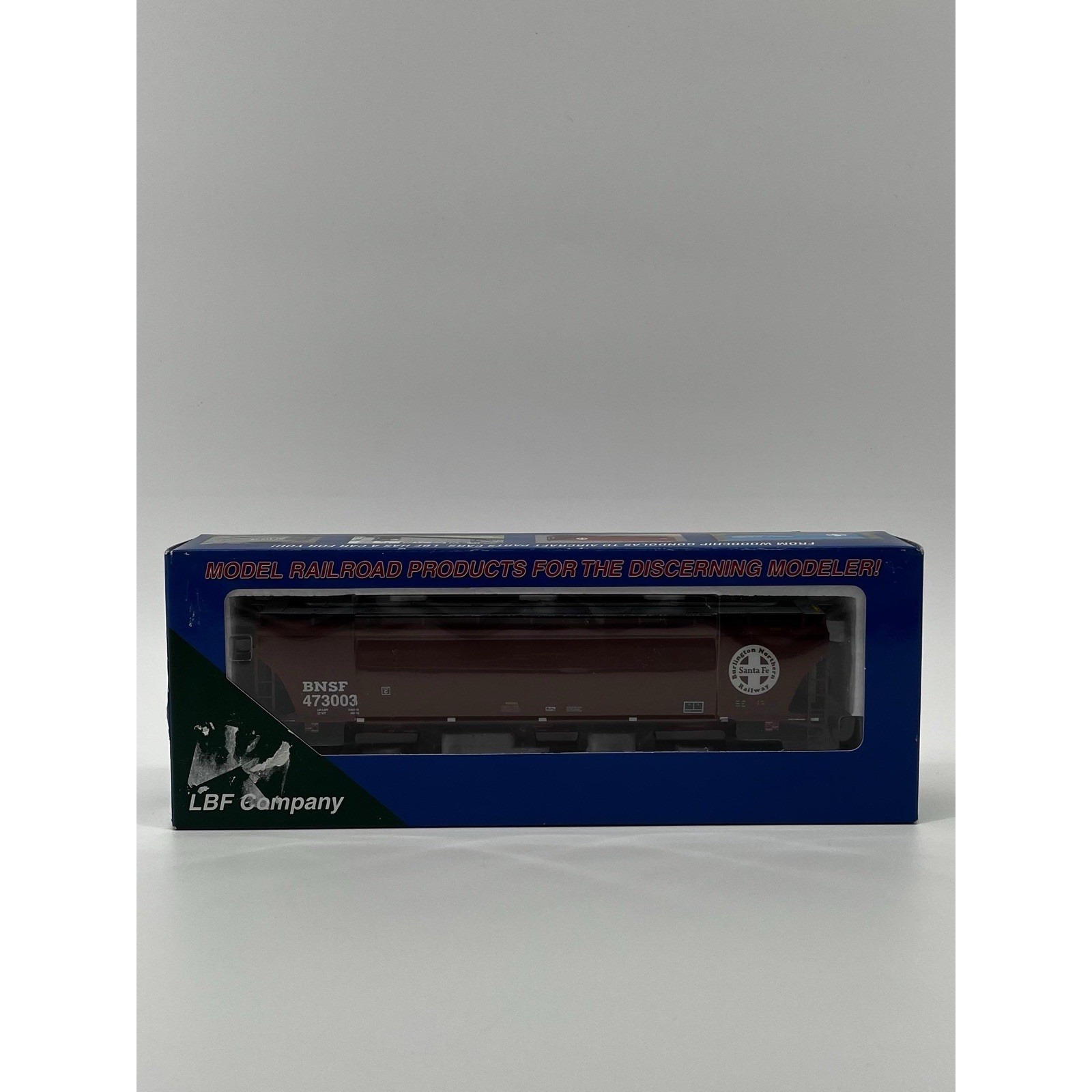 The LBF Gold Series RTR HO Scale 2101 Trinity 5161 Grain Hoppers is a vintage model train accessory in a multicolor design, specifically replicating the Trinity 5161 Grain Hoppers in BNSF corporate roadname. This ready-to-go pre-built plastic hopper car is in 1:87 scale, perfect for model railroads and trains enthusiasts aged 17 years and up. With a detailed design and a vintage transportation theme, this product is a great addition to any HO scale model railroad collection. Made by LBF, this grain hopper car is a unique and eye-catching piece for enthusiasts looking to enhance their train layout.