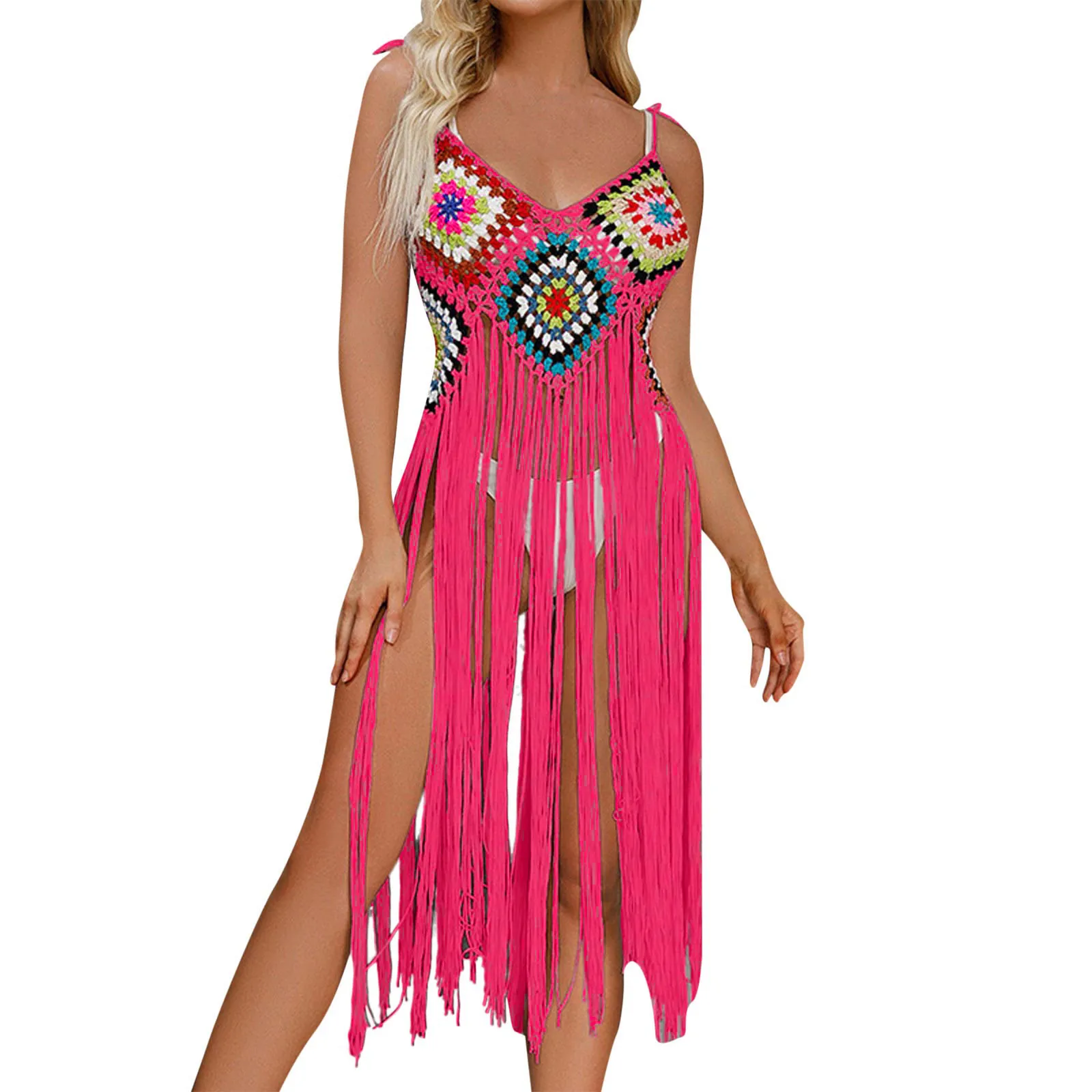 【Gift】Women's Summer Swimsuit Cover up:crochet knit fabric,soft and comfortable.Tassel Fringe Bikini Coverups:summer must for and gift chioice for women friends or family as a birthday gift, Honeymoon gift, maternity,anniversary gift